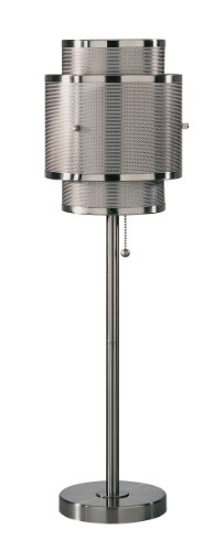 Product Descriptionp/pAn eye-catching modern design featuring a mesh-laced, three-tier shade and a chrome base and pole. On/Off pull-chain. Lite Source table lamp design. Uses one 60 watt bulb (not included). 27 1/2" high. Shade is 10" high.